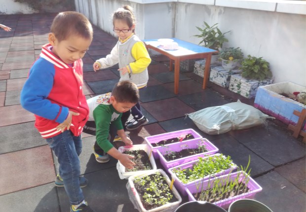 除了传统教育外,我们利用有限的空间开展种植活动,将教室打造成私家菜园,根据季节种上时令蔬菜,从播种到收获,让孩子参加食物的种植与制作,去亲身体会有劳动才有收获的感受。在老师的带领下,9月播种的豌豆、小白菜、豆芽菜都陆续进入收获季,当孩子们在游戏区亲手烹饪这些蔬菜时,更能体会劳动的快乐,感慨食物的来之不易。