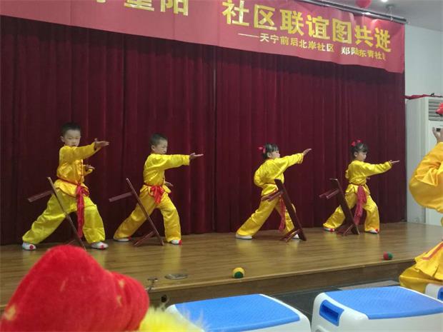 活动当天,孩子们整装待发,一路上欢声笑语,早早地来到目的地。活动中,不管是“阳湖拳”,还是“鸡年话鸡”,孩子们的表演得到了大家的啧啧赞叹。阳湖拳展示中,孩子们个个精神抖擞,一招一式中透露着满满的精气神;舞蹈展示中,孩子们将小鸡的每个动作都演绎得活灵活现,逗乐了参与活动的爷爷奶奶们。