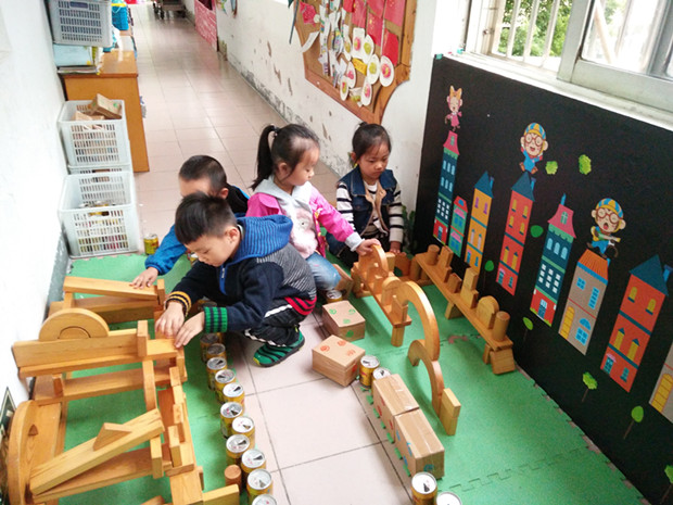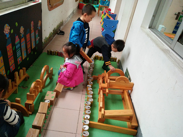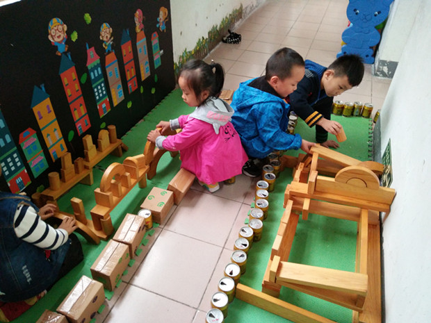 建构游戏是指利用各种结构材料或玩具进行建构的活动,实现幼儿对周围现实生活的反应,从而发挥幼儿的积极主动性,提高自主活动能力和想象力、创造力。茶山中心幼儿园给幼儿提供充分的操作、尝试、体验、交往和表现的机会,让幼儿在轻松的气氛中自由选择,自由活动,通过与材料、环境、同伴充分互动而获得学习与发展。