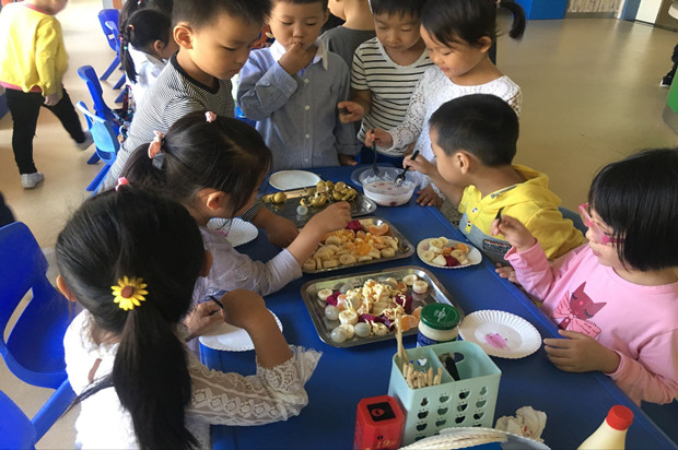 活动中小朋友们手拿餐盘和勺子,看着这许多独具匠心的水果拼盘,都迫不及待地要开始自己的水果自助餐之旅了。自己动手挑一挑,选一选,大家都吃得不亦乐乎。最后为自己挑选的水果配上美味的沙拉,为水果分享主题活动划上了一个圆满的句号,水果盛宴也完美落幕。