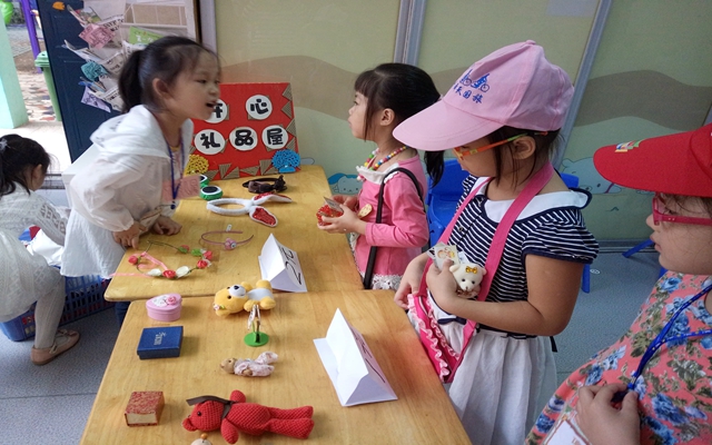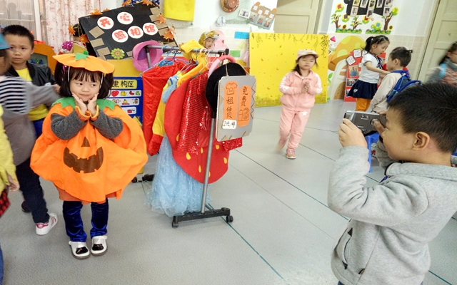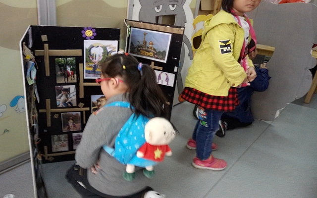 今天,实验幼儿园大三班内热闹非凡,这里正开展着“我们去旅游”的角色游戏,看:休闲吧、烧烤店、开心礼品屋、开心照相馆、快乐大剧院个个场景布置的整整齐齐像模像样,每个部门的“经理”招聘了“工作人员”进行着各自的“工作”。自由行的“爸爸妈妈”带着自己的孩子穿梭在各个景点,一会去烧烤店点单休闲吃烧烤、一会去“开心礼品屋”购买礼品、一会去“开心照相馆”去拍照留念、一会去“快乐大剧院”观看精彩的演出。老师们也投入到游戏中,与孩子在商店购物,讨价还价观察孩子的反映能力。照相馆以所取照片不是自己为由向幼儿发难,都让孩子们快速想办法解决了。整个活动室内洋溢着一张张快乐的笑脸,不时传来阵阵欢笑声。