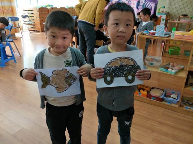 活动前,家长积极配合,一起收集各种各样的种子,有黄豆、花生、绿豆、瓜子、玉米粒、大米、小米、红豆、黑豆、稻谷、芝麻等,活动中,在家长的指导帮助下,一粒粒种子在家长和幼儿的手里变成了一幅幅美丽的图画:有的幼儿选择用豆子粘贴花蝴蝶,有的幼儿选择用大米粘贴小猫、小鱼,有的幼儿选择用瓜子粘贴向日葵等……孩子们充分发挥想象力和创造力,粘贴出了一幅幅美丽的作品:快乐的熊猫兄弟、勤劳的蜜蜂、美丽的葵花、可爱的七星瓢虫、奔腾的马儿、翩翩起舞的蝴蝶……充分展现了幼儿活泼的艺术天性。家长们也纷纷表示这是一次难得的经历。