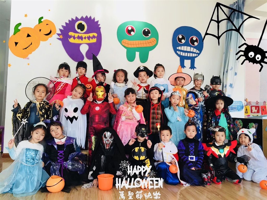 每年的10月31日,都是阳光龙庭哈佛幼儿园小朋友们最开心的节日,也是充满神秘的节日。一大早,小朋友们就穿上精心准备的“奇装异服”来到了幼儿园,有美丽的人鱼公主、酷酷的特警、萌萌的小僵尸、蜘蛛侠版F4……“万圣节狂欢party”开始啦!