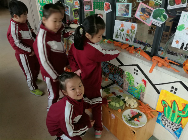 蔬菜是小朋友们每天都能直接接触到的物品,是孩子们健康成长的物质来源之一。蔬菜家族以其色彩斑斓、形态各异、味道鲜美、营养丰富的特点,带领大班的小朋友进入了香香的蔬菜这一主题中。在看一看、闻一闻、做一做、尝一尝的主题脉络之下,