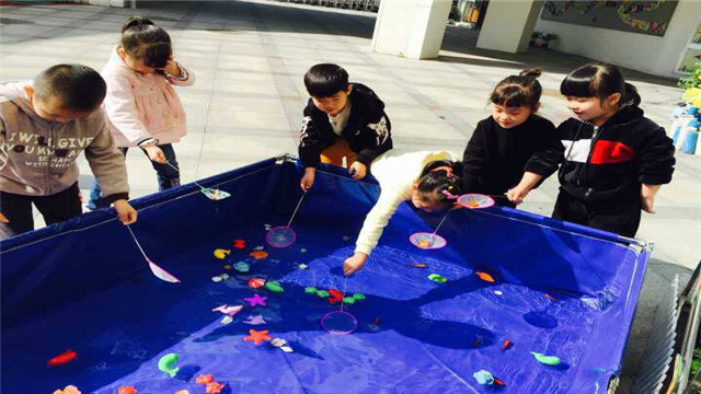 玩就是游戏,游戏就是玩。玩性是孩子的真性情,玩对他们而言才是最重要的事情。“小鱼小鱼游啊游,游到东来游到西,农民伯伯来捉鱼……”和水有关的活动总是特别受孩子欢迎,这不游乐场的捕捞小鱼的游戏被搬到红梅幼儿园来了。