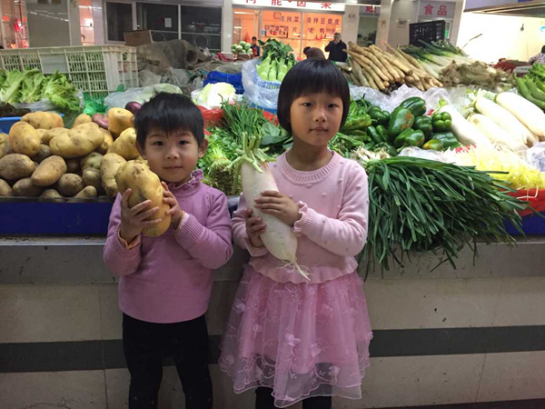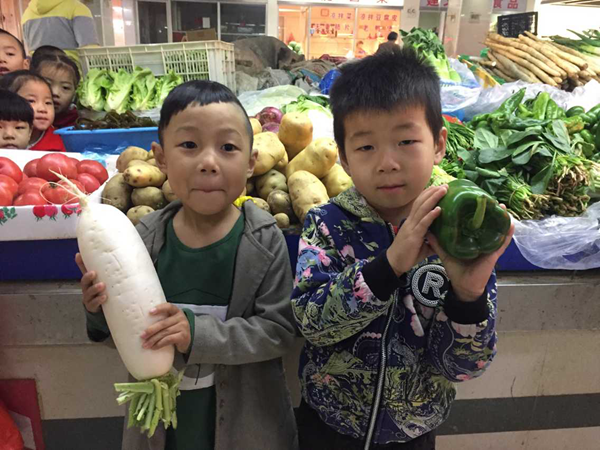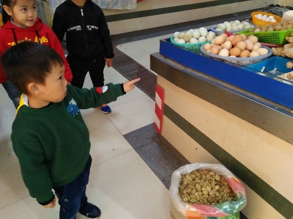 孩子们来到菜市场后看到琳琅满目的菜品都十分兴奋。“我认识青菜,我奶奶带我来买过!”“这就是大白菜,和我们歌里唱的一样!”“这是什么菜啊,我好像没吃过……”孩子们畅所欲言,在各个摊位前驻足停留,有些孩子主动的和卖菜的营业员交流起来,还有一些孩子拿出了事先准备好的零钱,在老师和营业员的帮助下,买到了自己想吃的菜。