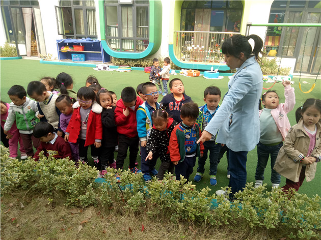 今天我们组织幼儿散步时,许多孩子都观察到了秋季环境的变化,他们非常开心,有的举起树叶说:“老师你看,秋天有小树叶落下来了!”“老师老师,这里还有小花呢!”还有的孩子说:“老师我看到了小蚂蚁在搬家。”