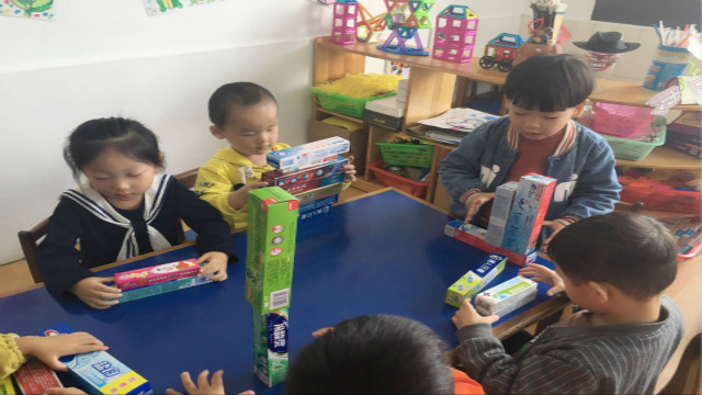 看,刚入园的孩子们除了玩插塑玩具,还将家里废弃的牙膏盒带进游戏区,可以进行垒高,还能够建一条长长的马路呢,看孩子们玩得乐此不疲,变化出多种玩法制造快乐。像牙膏盒低结构自制玩具中,更加注重结构简单、可玩性强,同时还提供给孩子自由操作和探索的机会。因为如果幼儿在游戏中不能以自己的方式驾驭玩具,就较难获得成功感和胜任感。
