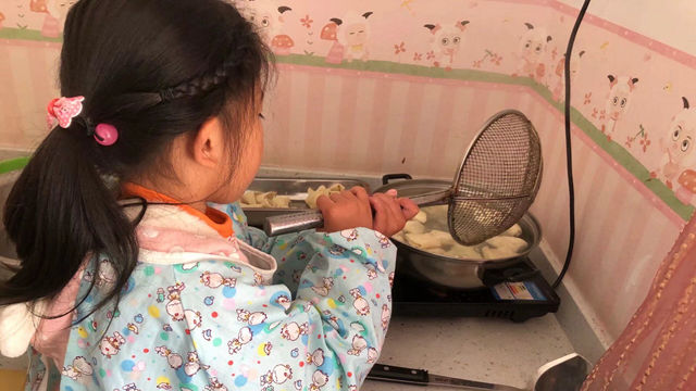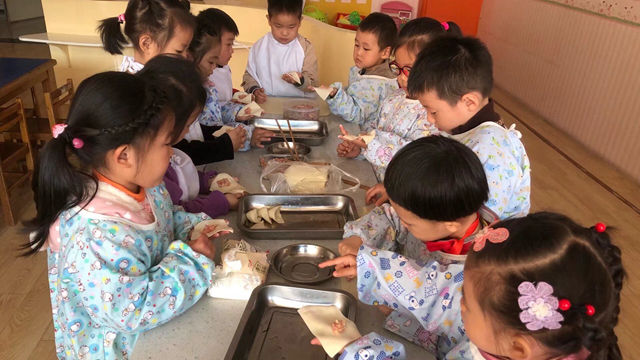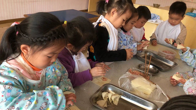 你瞧,那个孩子还包起了三角形的大馄饨,还有班戟形状的,更有圆圆的大馄饨。下锅的时候,孩子们帮助老师小心的靠近锅子抄起漏勺将饺子轻轻的铲起,防止馄饨皮粘锅底,最后大家围坐在小桌子面前一起品尝自己的作品。孩子们纷纷表示自己包的馄饨虽然形状不标准,但是却非常好吃呢!她们的小脸上充满了着无比的快乐、自信的成就感。