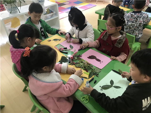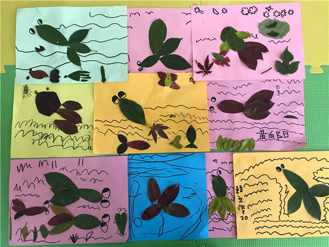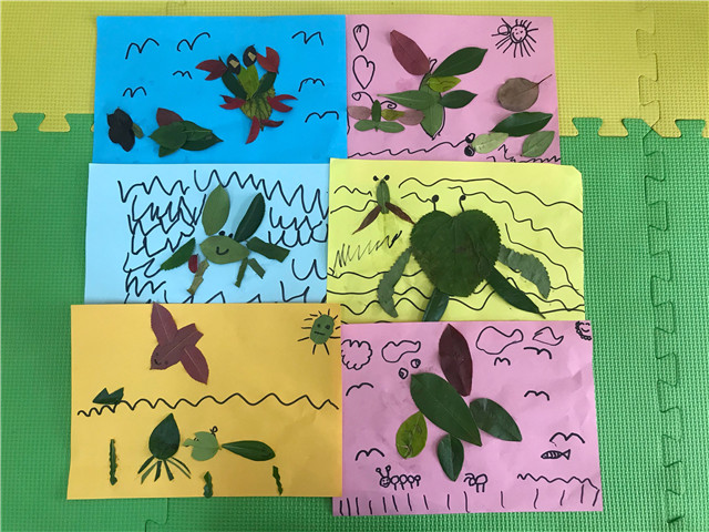树叶拼贴画原材料来自于美丽的大自然,有利于幼儿感知自然、观察生活,同时让幼儿在收集树叶的过程中树立绿色环保意识,增进对大自然的热爱。同时也发展了幼儿的动手及想象创造能力。