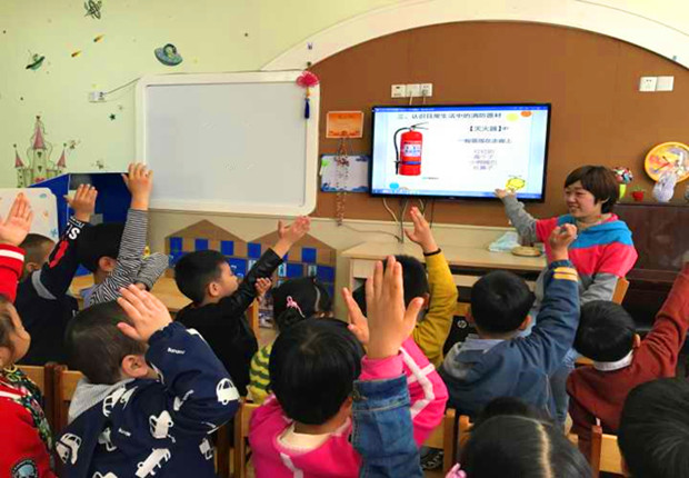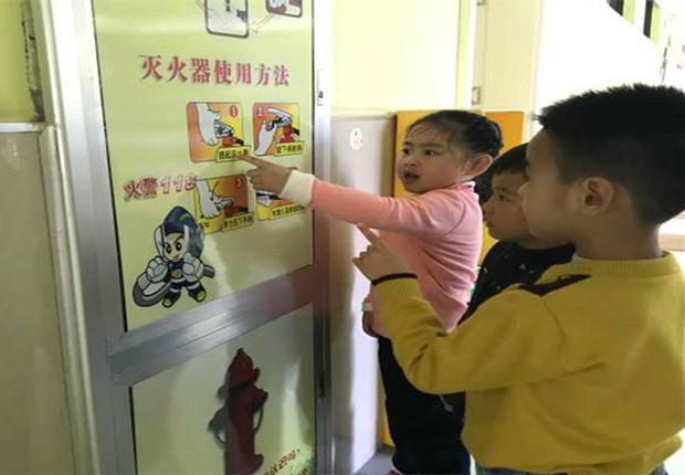 首先,各班教师通过视频、PPT以及师生互动的方式,引导幼儿明白在火灾中正确逃生的方法和如何使用灭火器等相关的安全知识。接着,教师们带领幼儿用湿毛巾捂住口鼻,弯腰小步快走,有序地进行安全疏散演练,整个活动取得了良好的效果。