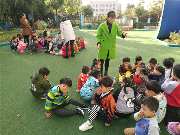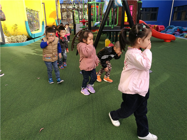 下午14点50分,警报声响起,各班教师迅速按紧急预案的疏散线路,带领幼儿拿起湿毛巾,捂住口鼻、弯腰小步快走,分两道楼梯迅速且有序离开活动室。途中,孩子们安静且井然有序,很快孩子们集中到操场安全地带,教师迅速地清点人数,并向本次活动的总指挥报告人数,本次疏散活动共用时3分15秒,活动结束后,消防安全负责老师对此次演练活动进行了点评,针对演练过程中出现的问题,现场向师生们讲解了在疏散过程中应注意的事项。