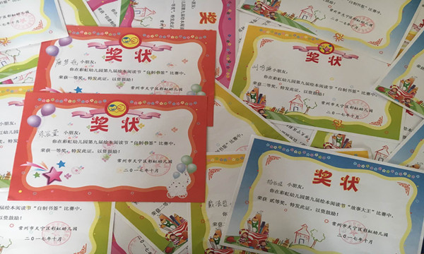 阅读月中,小五班孩子们感受到了优秀绘本书的乐趣与奥秘;家长和孩子一起享受每天的共读时光、一起制作绘本、一起制作书签;孩子们一起共同看书、共同表演……阅读月丰富多彩的活动让孩子和爸爸妈妈们难以忘怀,从中获得许多的快乐和收获。也获得了好多奖项,在“制作书签奖”中朱宸萱、唐梦瑶获得一等奖、蒋星宇等五个小朋友获得了二等奖、易米阳等3位小朋友获得了三等奖;“亲子绘本制作”中朱宸萱、荆张睿获得了三等奖、杨依诺等19位小朋友获得了优胜奖;、“故事大王比赛”中朱宸萱、杨依诺获得了二等奖、张涵婷、黄熠梵获得了三等奖;孩子们脸上都洋溢着幸福的笑容,在大家的掌声中期待着明年读书节的来临。