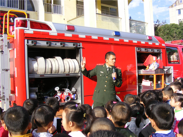 为培养幼儿的消防意识,掌握自救、逃生等自我保护的方法,结合“11.9消防安全宣传日”,2017年11月8日上午,红梅东村幼儿园邀请竹林消防中队的消防员,来园开展了一次消防安全知识的培训。