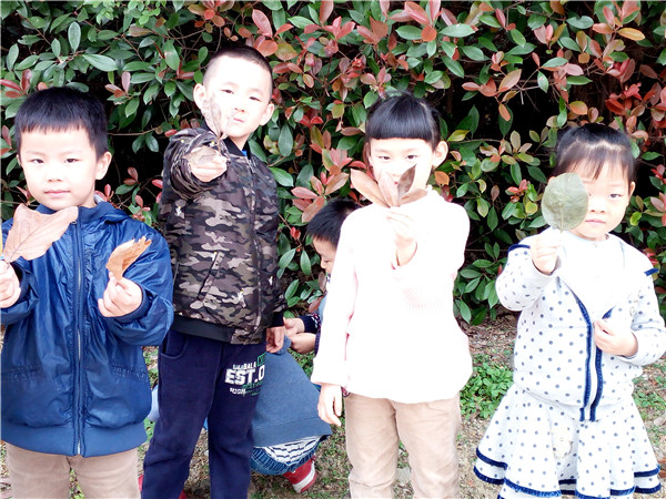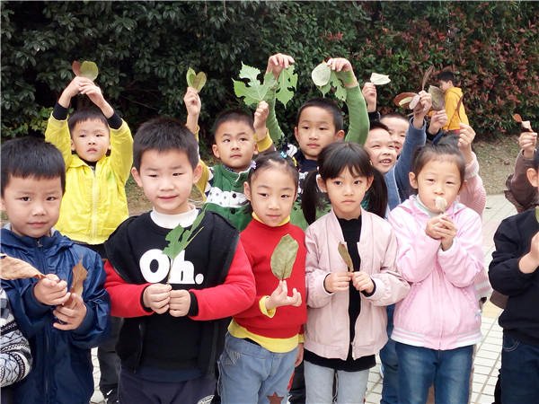秋风姐姐吹呀吹,大树摇啊摇,一会抖落一只金蝴蝶,一会抖落一只红蝴蝶,一会又抖落一只花蝴蝶。”一篇优美的散文诗《秋天真美丽》把孩子们带入了一个唯美的秋天童话世界。带着孩子们去捡树叶,小家伙们兴奋地在小树林里埋头寻找着。有的说:“哇,这片树叶好像一只手啊!”有的说:“这片叶子好像一把小扇子!”“快来看我找到的叶子,像一颗爱心耶!”看着孩子们就像是捡到宝贝似得,在落叶缤纷的小树林里欢呼着,从孩子的兴趣出发,树叶是非常好的美工材料。于是,树叶贴画的活动产生了。
