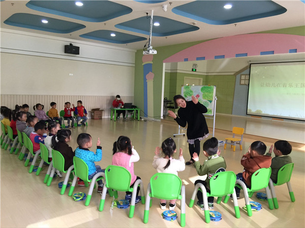 第一环节,展示观摩。本次提供了包含了大中小三个不同年龄层次的音乐展示活动,活动形式也比较多样,囊括了歌唱、韵律、节奏等。活动中每位展示的老师都有自己独特的风格,薛霏老师热情四射,在她的课堂中,幼儿完全被她的热情感染,全身心投入到活动中;夏蓉老师优雅从容的舞姿有一种特别的魅力,让幼儿情不自禁地跟随她的动作。青春可爱的林芳岩老师则为孩子们创设了生动有趣的游戏情境,将律动练习融于游戏情境中。香溢紫郡幼儿园缪洁园长也亲自参与了展示活动,缪园长对活动的深入思考、细节的精准把握给观摩的老师以深刻的启发。不知不觉,四节展示活动结束了,观摩的老师们仍觉得意犹未尽。