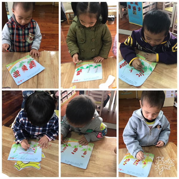 瞧,宝宝们又学到了一个新本领,让我们一起来看看他们作画时的精彩瞬间吧!