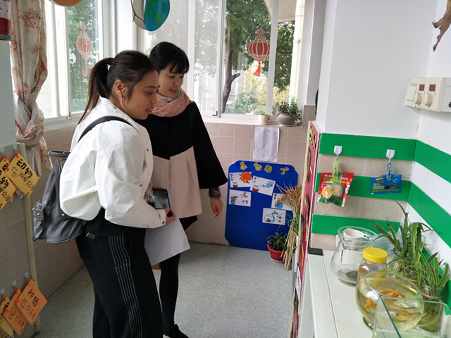 在邱霞园长的解说引导下,老师们参观了美观、整洁、富有童趣的园舍环境;又深入班级看个性化环境,极具特色的墙面环境布置,丰富创意的区域设置、废物利用的自制教玩具、彰显特色的专用教室等,令老师们对实验幼儿园的校园文化建设发出由衷的赞美,给参观的老师们留下了深刻的印象。
