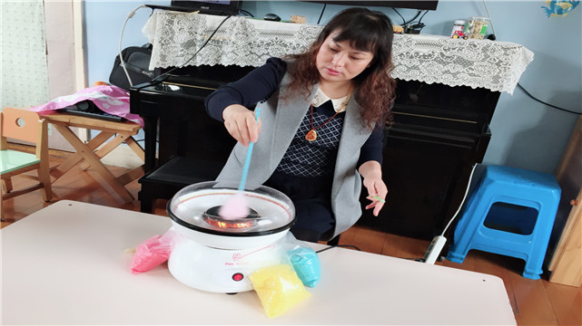 这次活动不仅让小朋友们大饱口福,而且也让他们实际体验了一把“民间手工艺家”的绝活,了解了中国的传统手工艺棉花糖的制作,小朋友们兴致格外高。
