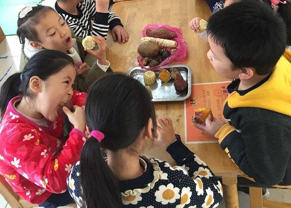 了解了粗粮的营养价值之后,孩子们迫不及待的想品尝一下自己带来的热气腾腾的粗粮,有的开始啃玉米棒,有的吃起了山芋,有的小朋友说从来没有吃过蒸熟的山药,想品尝一下,不管哪种粗粮,孩子们品尝之后都感觉有淡淡的甜味。