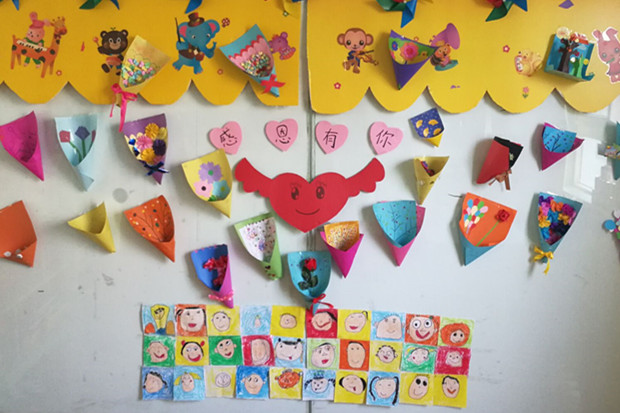 活动之始,各个班级运用“故事、谈话、儿歌、幻灯片” 等多种途径和形式让孩子了解感恩节的由来及其习俗,引发孩子主动关注家人、老师对自己成长付出的一切。活动中,各年级组制做了“感恩节”手工宣传展板,不同班级采取了不同的活动形式。