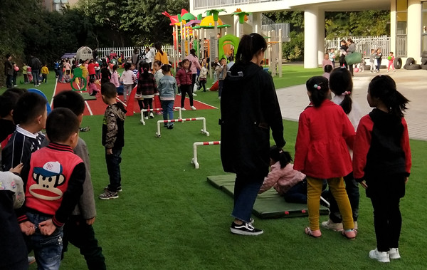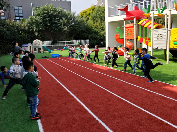 为了组织多样的户外游戏,让孩子们充分体验户外活动的快乐,彩虹幼首先为孩子们提供了适合幼儿的活动的场地,包括大操场、软质草坪跑道、植物园等等,给孩子们的活动创设了良好的空间。其次,利用丰富的游戏材料吸引孩子们的注意力。如:利用废旧材料自制的球拍、滚筒、曲棍球,幼儿园根据不同年龄配备的各种游戏材料,使孩子们有积极的心态参与到户外游戏活动中。再次,严格按照一日活动表,保证幼儿的活动时间。晨间游戏、饭后散步、课后游戏等等,让孩子接触户外自然,充分体验户外活动的快乐。