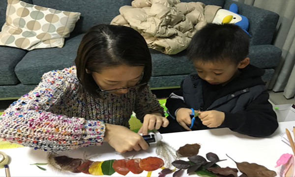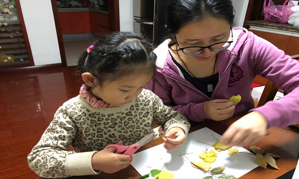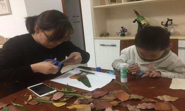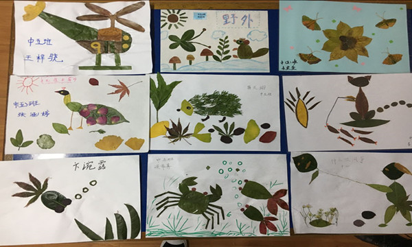 活动中,小朋友和爸爸、妈妈们的积极性可高了,他们一起收集漂亮的树叶,爸爸、妈妈们还认真地到网上查询有关的资料、图片。在制作过程中,他们有的是父子合作,有的是母女合作,还有的是全家总动员,他们一起动脑筋,想出了各种奇妙的构思,还花了很多的时间进行制作。金黄淡绿、形状各异的枯枝落叶和五颜六色的树瓣经过孩子们和家长们的想象和创造,立刻变成一幅幅精美树叶画,有“蝴蝶花儿开”、“美丽的孔雀”、“可爱的小鱼”、“有趣的螃蟹”等,栩栩如生。树叶拼贴画的原材料来自于自然,有利于培养孩子感知自然、观察生活、增强动手能力,帮助孩子从小树立绿色环保意识,增进对大自然的热爱。