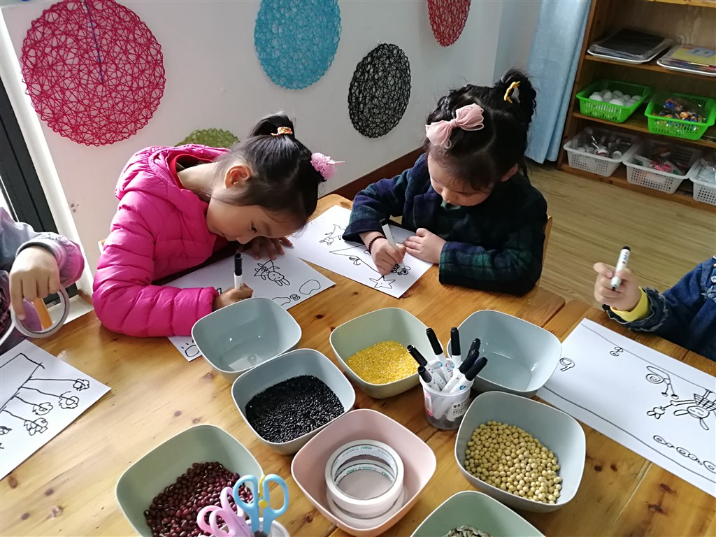 《3-6岁儿童学习与发展指南》指出,要创造条件让幼儿接触多种艺术形式和作品,并为支持幼儿自发的艺术表现和创造提供机会和条件。阳光龙庭幼儿园大五班的老师在《金色的秋天》这一主题下,为了让孩子们更好地感受种子画这一艺术形式,特别开设了种子画的美工小作坊,供幼儿创作。