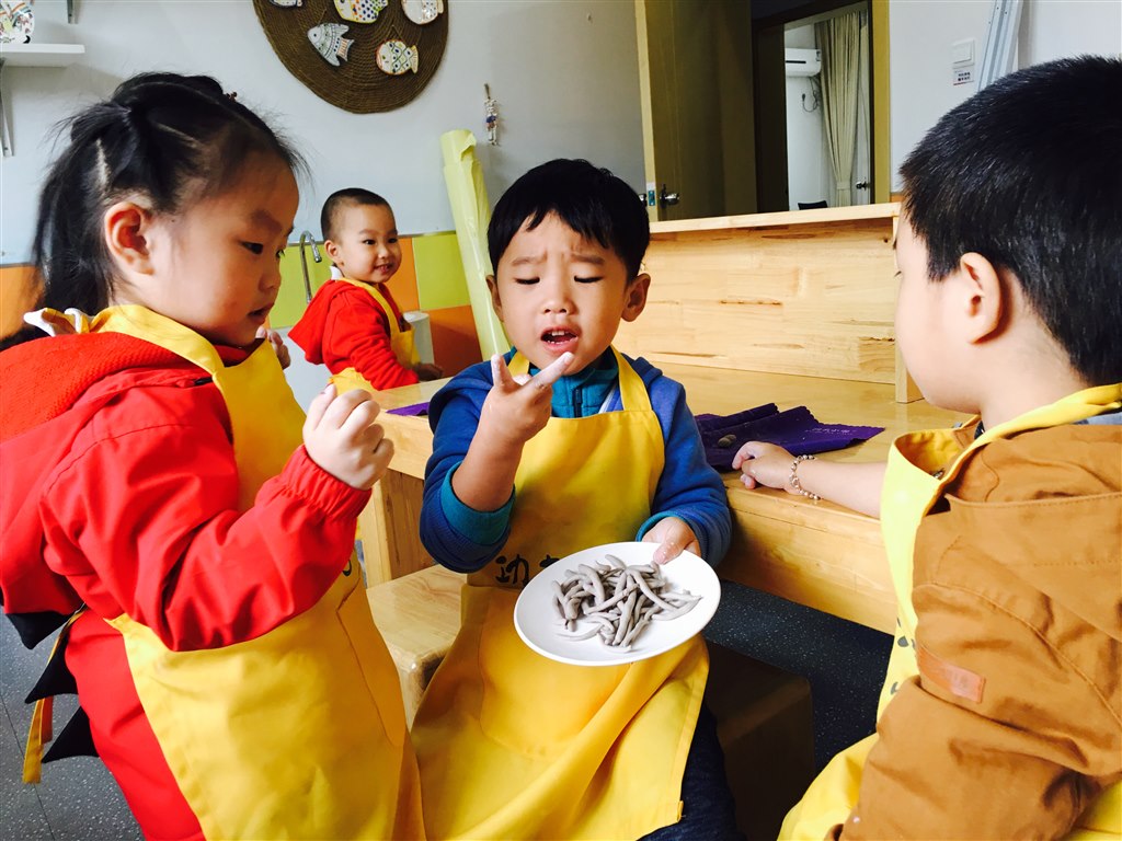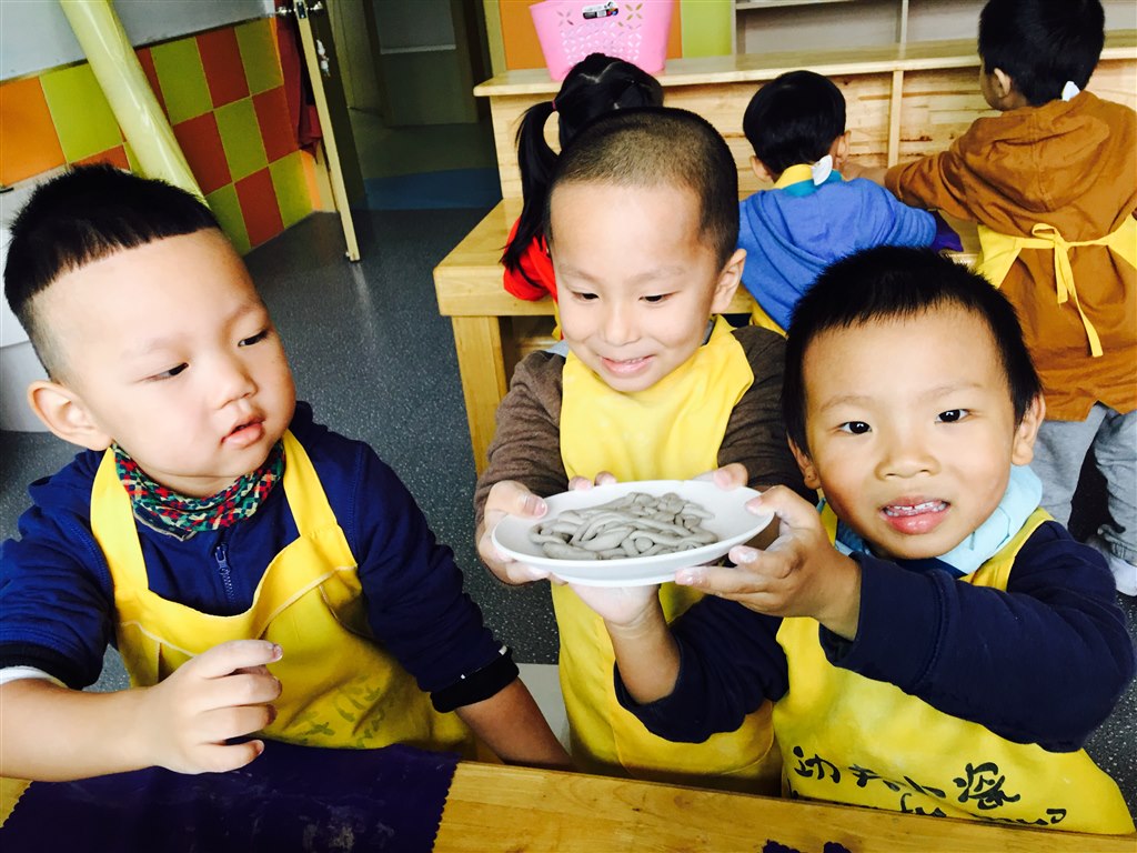 本次活动根据小班孩子的年龄特点,把情感和技能紧密结合,在情境化的游戏中融合陶艺的基本技能练习——搓圆、搓长,以“给娃娃做面条”为线索,一起完成一碗碗“常州银丝面”串联成情境为主线的陶艺活动,使幼儿在游戏的情境中自然、大胆、快乐地为娃娃们制作面条。(撰稿:章盈怡)