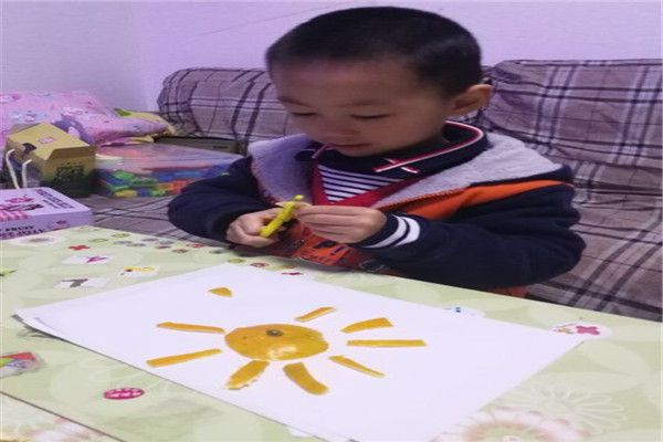 幼儿剥下的橘子皮还舍不得丢掉,瞧,“橘子皮”来到了幼儿的家里,宝贝和爸爸妈妈一起用橘子皮拼贴画,一幅幅作品充满了艺术感和趣味性。