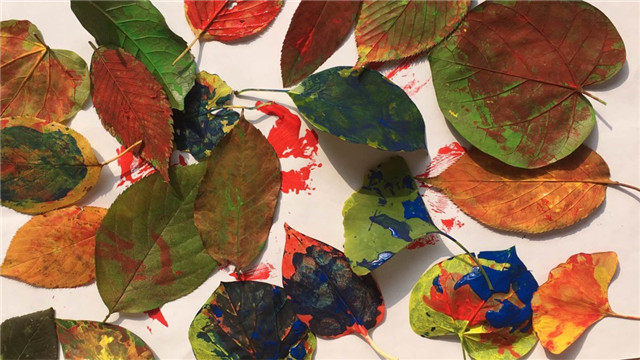 瞧,宝贝们在树叶上刷上自己喜欢的颜料,用拓印的方法将树叶一片片印下来,神奇又有趣。全新的绘画形式,不仅让幼儿体验到印画活动的乐趣,感受树叶印画的美,也让孩子们感受到艺术创作的形式是多种多样的。
