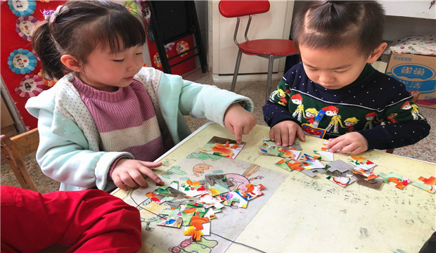 拼图游戏的开展不仅能促进幼儿的各种技能和智能的提高,也能促进幼儿社会性的发展,是一种不可多得的好游戏。!(程小燕)