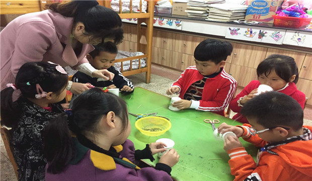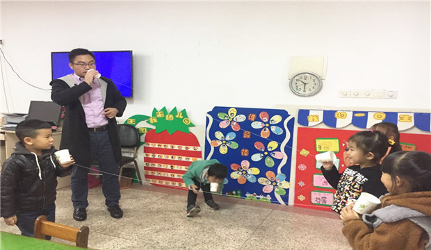 活动开始,爸爸神秘地对孩子们说:“我是灰太狼爸爸,今天灰太狼爸爸要与孩子们一起玩游戏,你们愿意吗?”孩子们一下子就和这位爸爸拉近了距离,接着爸爸出示神奇的纸杯电话让孩子们猜猜这个可以干什么?怎么玩?怎么做?……激发了孩子探索的欲望,他们跃跃欲试,通过试一试、玩一玩,发现到了其中的秘密,然后爸爸通过示范讲解与孩子们一起制作纸杯电话,并帮助指导有困难的孩子,不一会儿,一个个神奇的纸杯电话在孩子们的手中诞生了,孩子们与爸爸、伙伴们打电话问候、交流,教室里到处是欢笑声一片,整个活动就在这快乐的氛围中结束了。