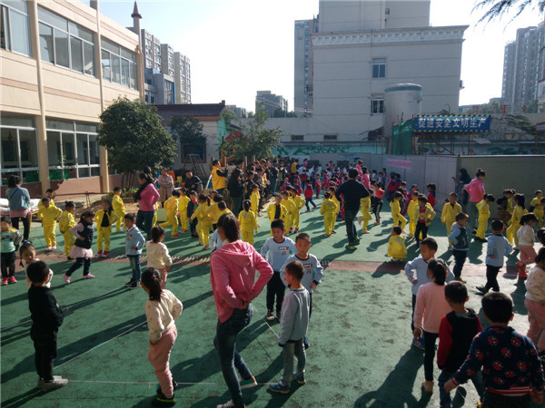从开学至今,各班老师带着孩子们坚持不懈的练习,现在孩子们一个个动作规范。首先展示的是大班小朋友,他们个个精神抖擞,动作到位,民间游戏《马兰花》、《老鹰捉小鸡》的队形变换整齐又熟练,在展示操节时,他们喊着响亮的口号,个个朝气蓬勃,从动作到眼神,一招一式都颇具哥哥姐姐的模样。中班小朋友们也不服输,玩起老民游《老狼老狼几点了》、《炒黄豆》真是一板一眼活力十足,小班的宝宝们也展示了《网小鱼》和《小动物模仿操》,别看他们个子小小,但是都能够跟着音乐的节拍快乐地动起来,萌萌的表情吸引着大家的目光。操节展示中,老师们英姿飒爽,活力无限,在整个活动中能够自始至终以饱满的精神感染幼儿。