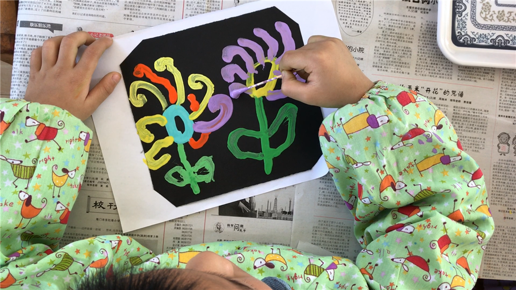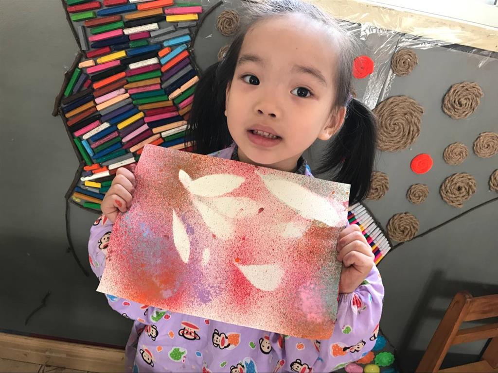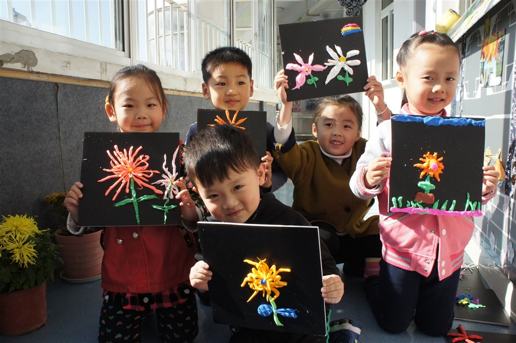 自然角美丽的菊花是秋天不可多得的美景,小朋友们用彩泥捏一捏、搓一搓、揉一揉,留下了一朵朵形态万千的菊花;一根根棉签在小朋友的手中更是变成了画笔,和彩色的颜料碰撞在一起,绘成了一株株奇妙灵动的菊花;小朋友们发挥自己神奇的想象力,让每一片树叶都有自己的用武之地,这里拼一拼,那里组一组,再用五彩的颜料喷一喷,留住了秋天的美……