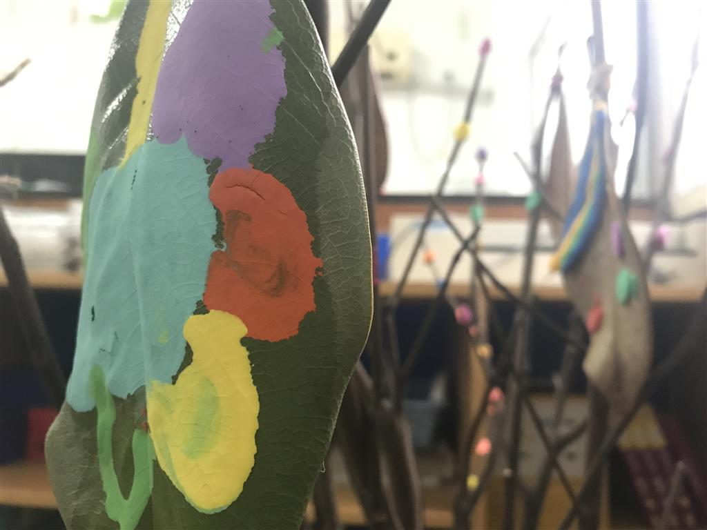 听听,秋的声音,大树抖抖手臂,刷刷,是黄叶道别的话音。小朋友们在幼儿园里寻找着秋天的痕迹,树上的叶子变黄了,风一吹,一片一片树叶唱着歌儿,像飞舞的蝴蝶飘落到地上、操场上、小花园里,几只小蚂蚁你争我抢地钻了进去,像是找到了它们的遮阳伞呢!红红的枫叶、黄黄的银杏叶、宽大的梧桐叶等各种形态不一、五颜六色的叶子。他们开心的讨论着:“树叶可真漂亮呀!”、“这个树叶长得像小鸭子的脚诶!”、“这个树叶为什么没有变成黄色呢?”“这个树叶变成黄色是不是就枯死了?”小朋友们想留住秋天美丽的景色,于是红梅东村幼儿园中班开展了“用画笔留住秋天,让树叶化作美丽”的活动。