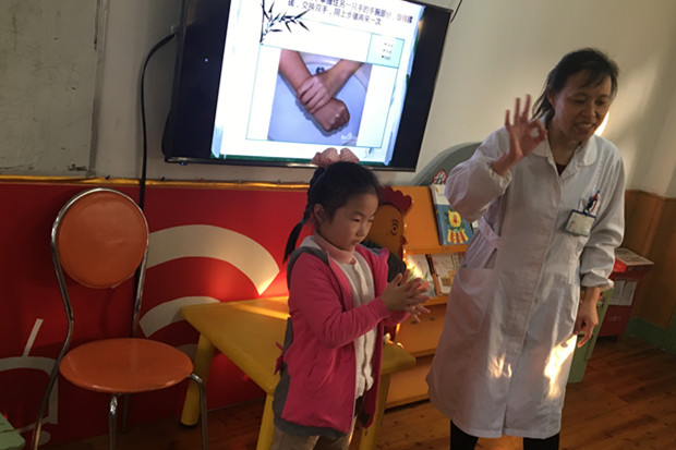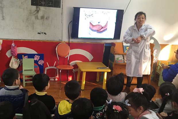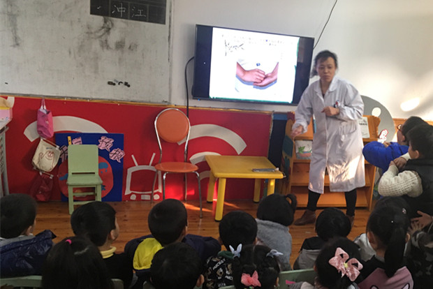 秋冬季是冷热交替的季节,也是疾病多发的季节,为加强对传染病的防治,为了将正确洗手的习惯真正内化到孩子们的日常生活中,2017年11月22日下午,怡康幼儿园请来天宁区社区街道的医生为幼儿开展了一场以“正确洗手,手‘筑’健康”的活动。