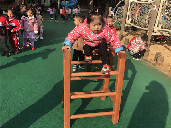 为了将《3-6岁儿童学习与发展指南》的精神物化为教育教学行为,落实到幼儿在园一日活动的各个环节中,满足“每天不少于2小时户外活动”的要求,茶山幼一直注重户外活动的开展,为充分利用仅有的一个操场,根据幼儿的年龄特点,以发展幼儿基本动作和协调能力为出发点,大、中、小班的幼儿错时在户外由老师组织带领,分区域进行游戏,逐步达到让幼儿具有一定的力量、耐力和适应性,有效促进幼儿身心健康发展。