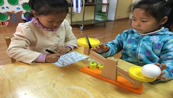 随着年龄、认知的增长,大班的孩子越来越喜欢操作,对生活中各类物品的轻重感兴趣,喜欢尝试比较,发现其差异。为此,大四班的老师组织了一场比轻重的教学活动。