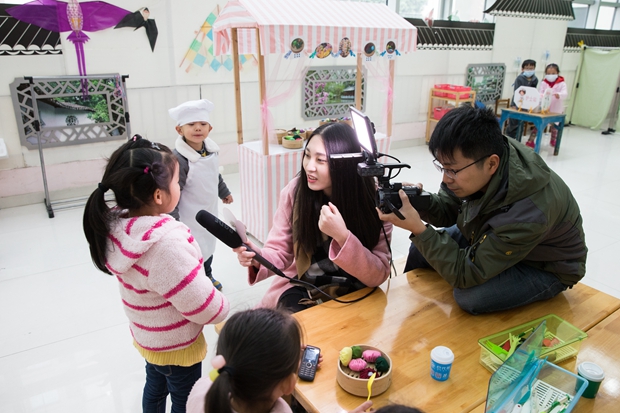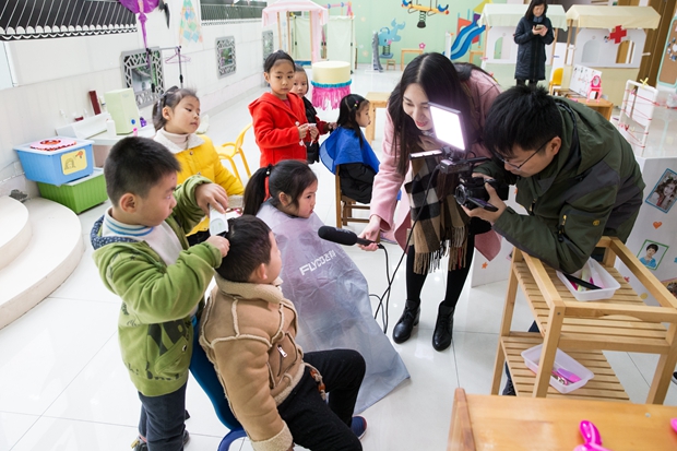 本次拍摄主要分为两大板块:第一板块主要拍摄新城逸境幼儿园内部专用室环境,包括今年新改造的以“粉色”为温馨主调色的家庭体验室、以一楼大厅长廊为主的职业体验室,以及各特色专用室;第二板块重点拍摄一楼职业体验室幼儿游戏现场精彩瞬间。瞧,电视台摄影师叔叔扛着机器穿梭在人流中,生怕自己错过每一个精彩镜头,美女记者也是拿出手机,把这一幕幕有趣的画面第一时间拍摄下来,发送至朋友圈,让更多的朋友了解了新城逸境幼儿园园所特色。