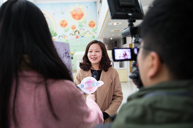 在采访中,马燕老师结合一楼大厅游戏走廊的9个灵活的“职业体验室”从理念设想雏形——游戏内容设定——幼儿游戏现场内容改进——幼儿游戏环境自主布置——游戏内容完善等环节进行了简要的介绍,重点强调了“倾听幼儿想法、尊重幼儿想法、实现幼儿想法”这一童趣课程理念,让幼儿成为游戏主人;张娟老师就从暑假期间全体教师对专用室的大胆改造中说起,在保留原“创意美术室”“图书吧”“科探室”“乐当家”等几大专用室的基础上,今年又增加了“家庭体验室”、“职业体验室”以及“建构室”,力求通过“艺术环境文化”的建设,充分发挥校园文化的熏陶功能,让校园的一景一物都无声地“说话”,使幼儿园成为教师与幼儿流连忘返的花园、温暖的家园和幸福的乐园。
