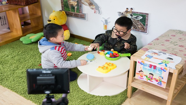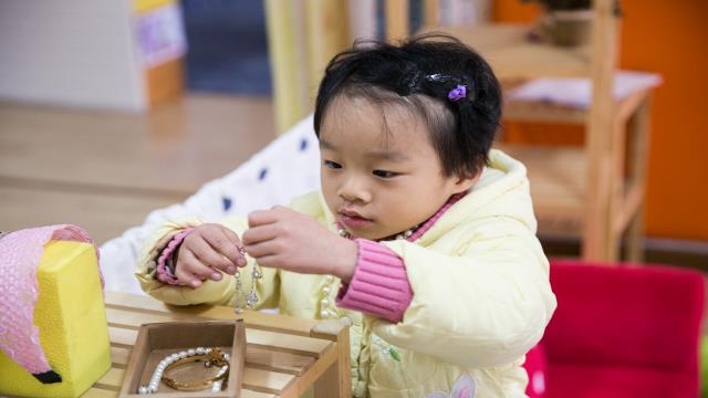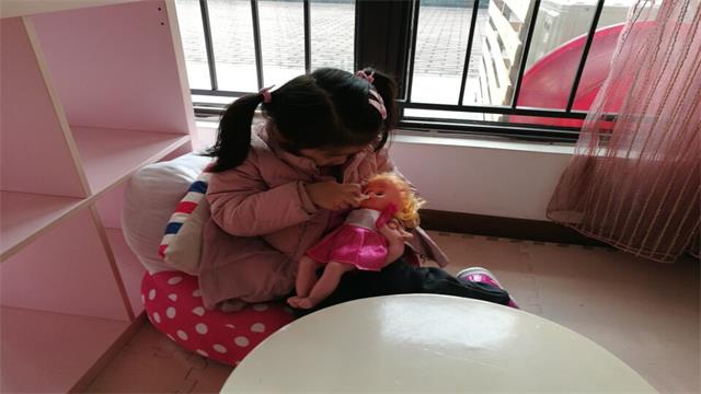 小班的孩子特别喜欢“娃娃家”角色游戏,常州市天宁区新城逸境幼儿园的老师们为孩子们创设了“家庭角色体验室”,孩子们自己选择伙伴、商量家庭成员的人数和角色,然后选择适合自己角色的饰物打扮自己,并根据自己所扮演的角色进行游戏,充分反应出幼儿已将平时所观察到的大人的行为在游戏中得到了实践。