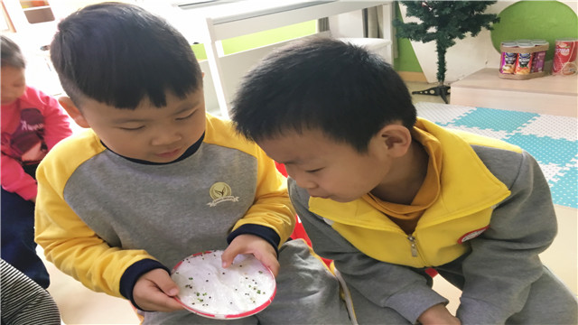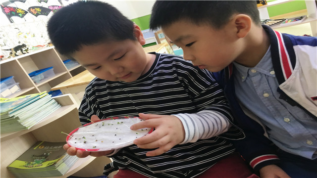 通过实验我们才能发现不仅土里能使种子发芽生长,水里也一样可以,小小的实验不仅让幼儿观察到种子的秘密和大自然的神奇,也培养了幼儿的好奇心,激发了幼儿的探索欲,让科学的种子在幼儿心里萌芽。(撰稿:潘宇娇)