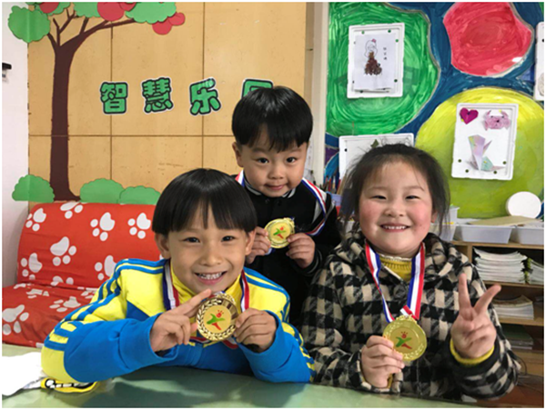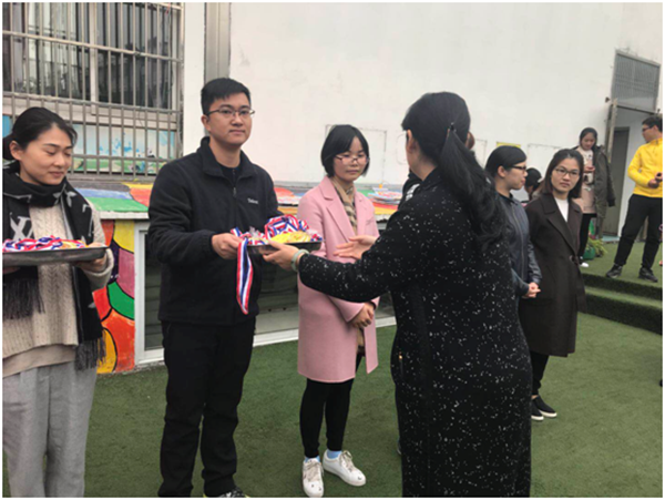 最后,园长妈妈给今天的活动作了总结,给每一位孩子都送上了光荣的金牌。