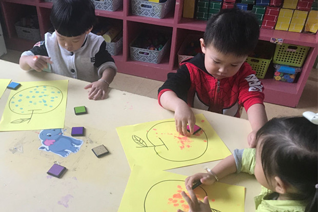手指点画这个活动,工具独特,操作方便,气氛轻松,画面也变化无穷,而且从作画的过程中具有挑战性也让幼儿有了不断想象和创造的过程。为了培养幼儿的想象力和创造力,让幼儿感知手指点画的乐趣,促进幼儿对美术活动能够产生更加浓厚的兴趣。近日,怡康幼儿园小班年级组开展了以秋天为主题的有趣的手指点画活动。