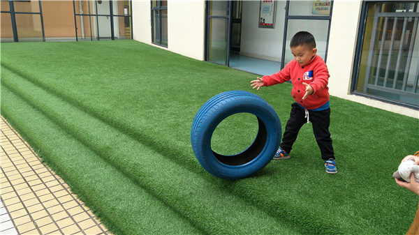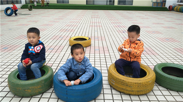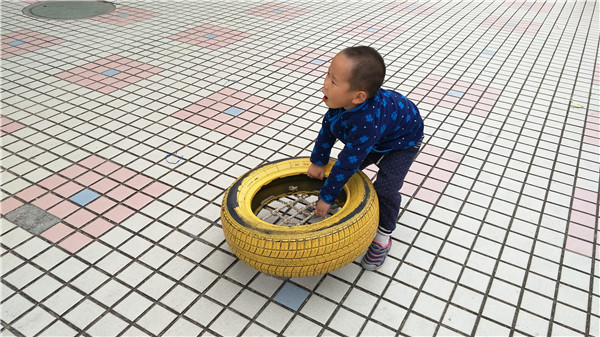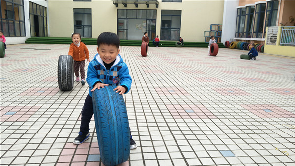 自主性游戏作为幼儿最喜欢的活动,是幼儿在一定的游戏环境中根据自己的兴趣和需要,以快乐为直接目的,自由选择、自主展开、自发交流的游戏过程。为增强幼儿体质、发展体能,满足幼儿户外游戏需要,彩虹幼儿园大操场边上,摆满了大小不一、五颜六色的轮胎。