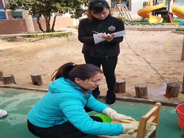 本次比赛以现场考试、现场操作方式进行,共有保育知识笔试,消毒液配比,擦桌子比赛,套叠被子四个比赛项目。评分内容涵盖保育知识成绩;消毒液的配比度;桌椅干净度、规范度;叠被子平整度、熟练度、完成时间等。每位保育老师们都努力在比赛中把自己最好的水平展示给大家,她们用娴熟的操作技能,展示出了她们平凡工作中的不凡之处。