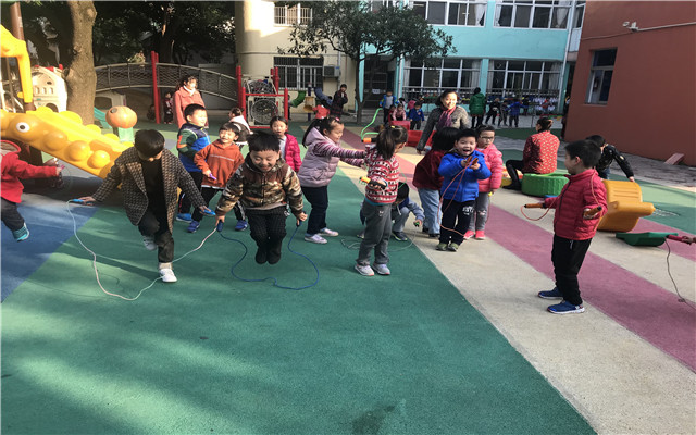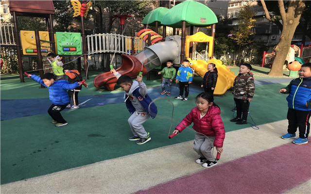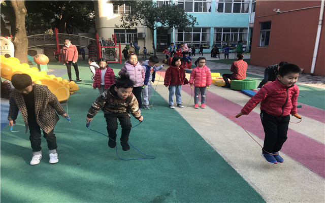 天气渐冷,跳绳运动作为促进幼儿身体协调,发展幼儿体能的冬季运动,在天宁区实验幼儿园大班的孩子中悄然兴起。但是,学习跳绳是一项比较枯燥的过程,如何让孩子积极参与、坚持锻炼呢?我园教师根据幼儿心理特点,以游戏的形式鼓励孩子参与到锻炼中。