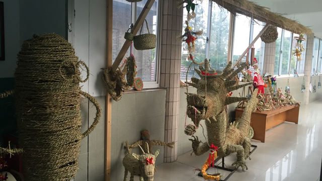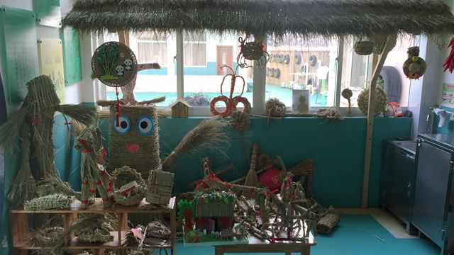 本次稻草节活动,焦溪幼儿园开发了一系列的稻草课程,各年龄段设计了相关主题活动,从教学活动安排到游戏活动设计都围绕稻草来开展。特别是在“课程游戏化”背景下,幼儿园更是把稻草玩出了花样:公共区域创设了“稻草加工坊”“稻草创意屋”等游戏区角。在这里稻草屋、稻草木马,稻草长龙,稻草木偶、稻草人、稻草动物……应有尽有。