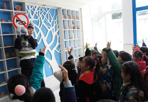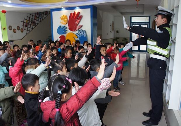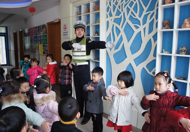 民警叔叔通过互动问答和交通安全儿歌教唱的形式,把遵守道路交通信号灯、安全横过马路、乘车系安全带、不在马路上追逐打闹、安全规范乘车等交通安全知识详细地介绍给小朋友们。民警叔叔还带着孩子们玩交通安全模拟游戏,让孩子们亲身体验,如何规范走路和安全过马路。